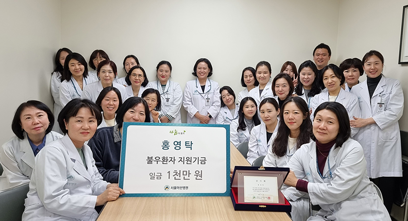 의료정보관리팀 최은진 직원이 2023년 12월 유방암으로 사망한 동료 직원을 추모하고자 본인을 포함한 직원과 지인 70여명으로부터 모금한 1천만원을 불우 암환자를 위해 후원했다.